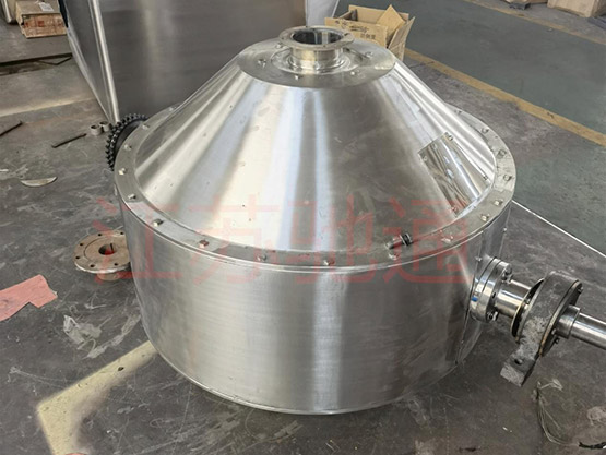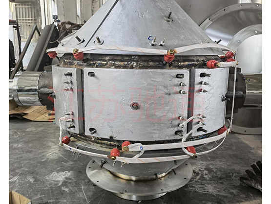 雙錐真空干燥機通過大小齒輪連接方式傳動,因而設備運行平穩。特別設計的工裝,充分體現了兩支軸的良好同心,真空系統均采用可靠的機械密封,給電系統采用旋轉滑環。在此基礎上,熱媒采用特制電加熱板復合內膽加熱,它既可調功率,又能進行分路控制電熱板加熱,從而達到罐內物料均勻干燥效果。此雙錐真空干燥機特別適用于新能源與金屬粉末的干燥,解決了以往長時間使用導熱油加熱產生油垢而升不上溫度的缺點。該改良后的設備操作簡單,維護方便,使用壽命長。